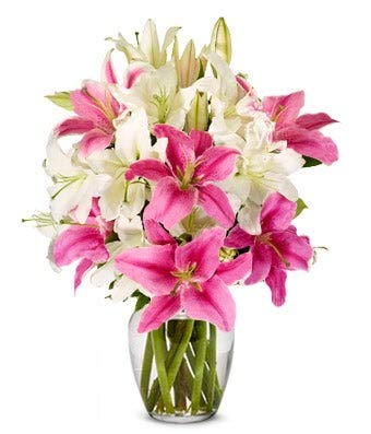 Flowers Stunning Pink And White Lilies Free Vase Included