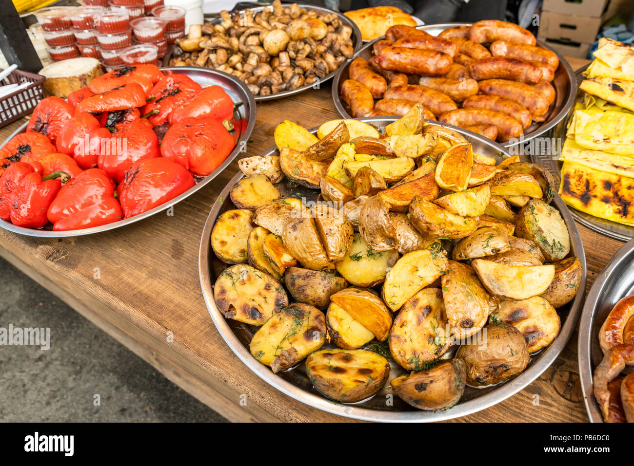 Fried Potatoes Sliced In Large Slices Laid On A Large Metal